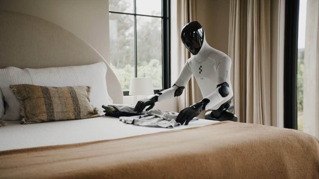 Robotning bo‘yi 168 sm, og‘irligi esa 60 kg. U soniyasiga 1,2 metr tezlikda harakatlana oladi. Har bir qo‘l keng burchakli kamera bilan jihozlangan bo‘lib, bu Helix sun’iy intellekt tizimiga atrof-muhitni asosiy kameralar ko‘rishdan chiqib qolgan holatlarda ham ko‘ra olish imkonini beradi. Masalan, robot shkaf ichidan buyum olishga harakat qilganda.
