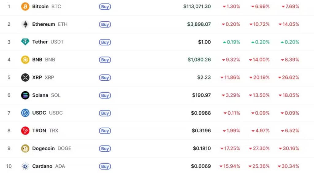 Kriptobozorda eng katta yo‘qotishlar XRP, Dogecoin va Cardano tangalarida kuzatildi — ularning qiymati 26–30 foizgacha pasaydi. Ethereum esa 10 foizga tushib, $4000 darajasidan pastga ketdi.