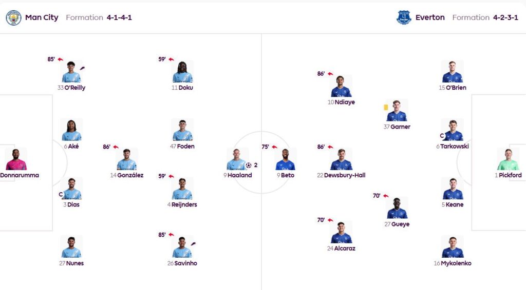 Ikkinchi taymda mezbonlarning norvegiyalik hujumchisi Erling Holland 58-daqiqada Pikford darvozasini ishg‘ol etgan bo‘lsa, 63-daqiqada bu ishni ikkinchi bor takrorladi.