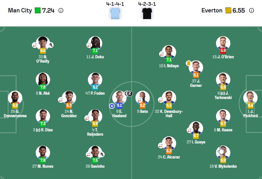 Dubl qayd etgan Erling Holland o‘yindagi eng yuqori balga ega bo‘ldi.