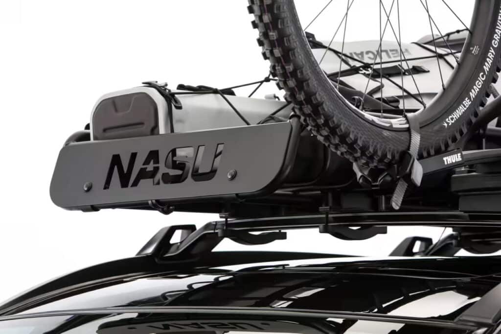 • Tom qismida «Nasu» logotipi tushirilgan bagaj qutisi va sport velosipedi.
