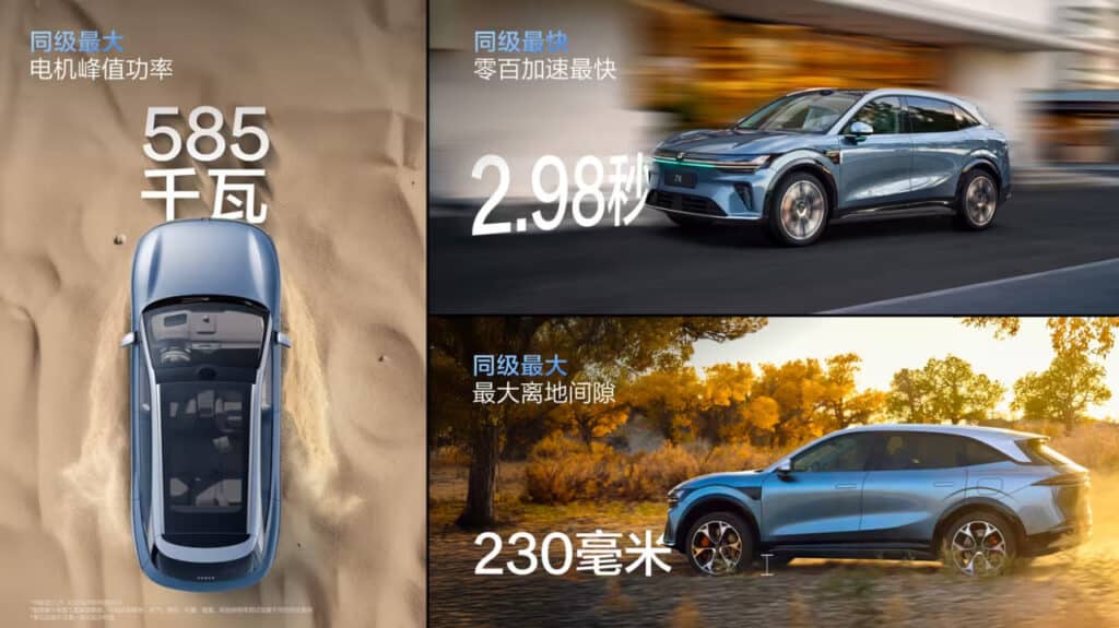 900 voltli yangi tizim tufayli batareyani 10 dan 80 foizgacha atigi 10 daqiqada quvvatlash mumkin. Avtomobil maksimal 255 km/soat tezlikda harakatlana oladi. Unda Qianli Haohan H7 haydovchiga yordam tizimi, 31 sensor, lidar va Nvidia Drive Thor-U protsessori mavjud.
