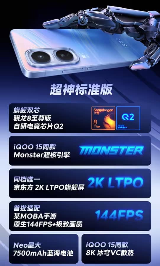 iQOO Neo11 sovitish tizimi uchun 8000 mm² maydonli bug‘ kameraga ega bo‘ladi. Xitoy bozorida u Snapdragon 8 Elite asosidagi Redmi K90 Standard Edition modeli bilan raqobatlashadi.