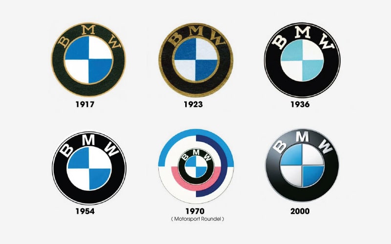 BMW logotipi 1917-yilda yaratilgan boʻlib, undagi koʻk va oq ranglar Bavariya bayrogʻidan olingan. Emblema yillar davomida yangilangan, ammo mohiyati oʻzgarmagan. U koʻpincha «osmon fonida aylanayotgan propeller» timsoli sifatida talqin qilinadi.