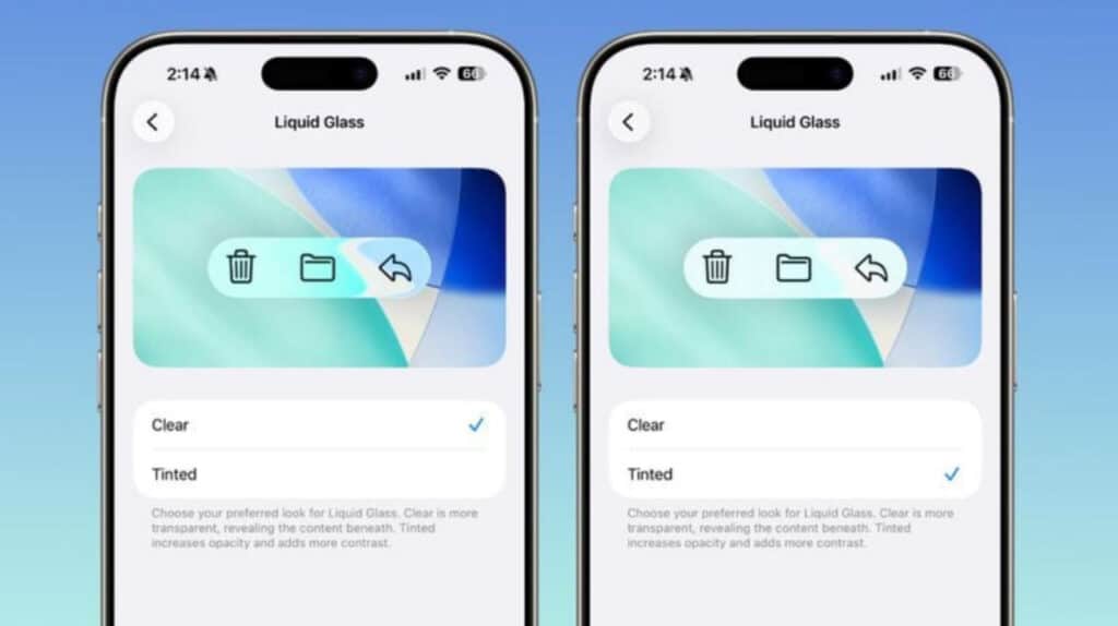 iOS 26.1 foydalanuvchilarga Liquid Glass shaffofligini sozlash imkonini beradi. Endilikda interfeysning ikki rejimidan birini tanlash mumkin: asl ko‘rinish «Shaffof» yoki kamroq shaffof «Bir rangli». Sozlash uchun Sozlamalar → Ekran va yorqinlik → Liquid Glass bo‘limiga kirish talab etiladi.