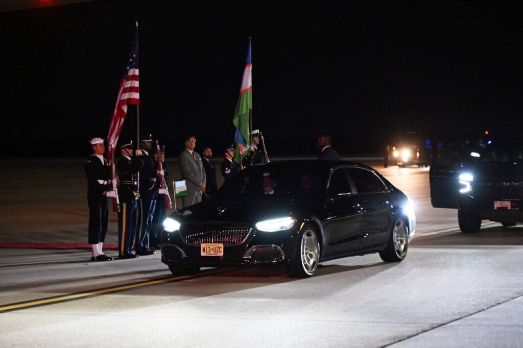 «Endryus» aviabazasida prezidentni AQSh davlat kotibining o‘rinbosari Kristofer Landau, AQSh–O‘zbekiston savdo palatasi raisi Kerolin Lemm va boshqa rasmiylar kutib oldi.