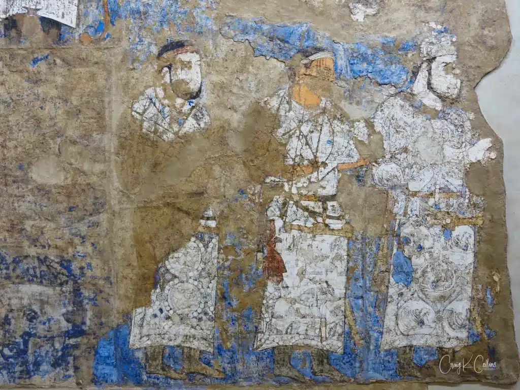 Ushbu devoriy suratlarda elchilar va kohinlar tasvirlangan. Ba’zilarning yuzlari oq ro‘mol bilan o‘ralgan, bu esa zardushtiylik marosimlarida dindorlar muqaddas olovni bulg‘amaslik uchun og‘izlarini yopishganini bildiradi. Hozirda bu devoriy suratlar Afrosiyob qo‘rg‘onidagi muzeyda saqlanmoqda.