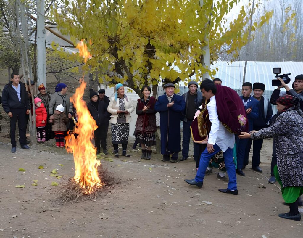 O‘zbekistonning ayrim hududlarida kelin-kuyovning olov atrofini uch marta aylanib, uyga kirishi odati saqlanib qolgan. Bu marosim poklanish va yangi hayot boshlanishi ramzi hisoblanadi.