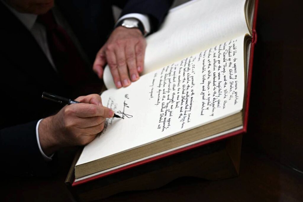 Mirziyoyev Faxriy mehmonlar kitobiga qayd yozib qoldirdi. Shundan so‘ng Oval xonada muzokara boshlandi.