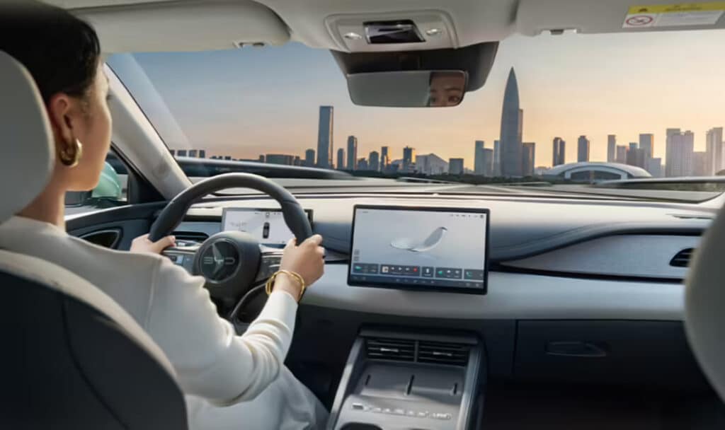 Salon «Ocean Family» uslubida ishlangan. Eshiklar va o‘rindiqlarda yumaloq chiziqlar ko‘p. Asboblar paneli to‘liq raqamli. Markazda 15,6 dyuymli sensor ekran bor. Vites tanlagichi aylana shaklida. Uning atrofida boshqaruv tugmalari joylashtirilgan.