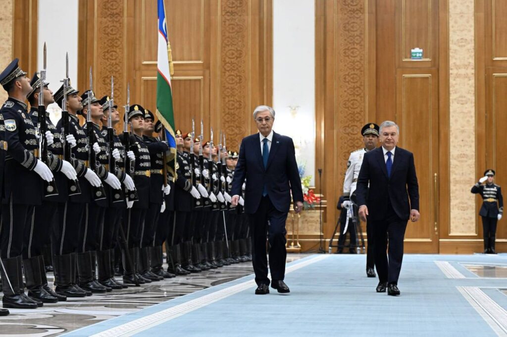 Prezidentlar Qasim-Jomart Toqayev va Shavkat Mirziyoyev faxriy qorovul safidan o‘tib, delegatsiya a’zolari bilan salomlashdi.