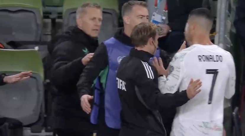 Ammo uchrashuv hakami VAR orqali qarorini o‘zgartirib, futbolchini maydondan chetlatdi. Ronaldu maydonni tark etayotib, irlandiyaliklar murabbiyi Xeymir Xadlgrimson bilan gaplashdi.