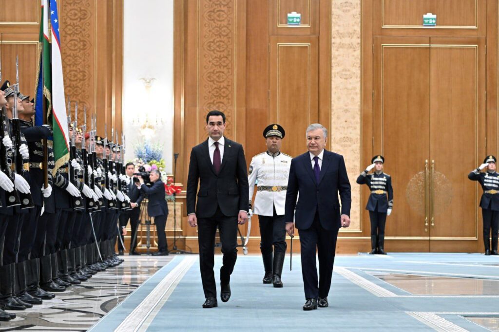 «Toshkent-Humo» xalqaro aeroportida davlat tashrifi bilan mamlakatimizga kelgan Turkmaniston prezidenti Serdar Berdimuhamedov rasmiy kutib olindi. Shavkat Mirziyoyev oliy martabali mehmonni shohsupaga taklif qildi, deya xabar berdi davlat rahbari matbuot xizmati.