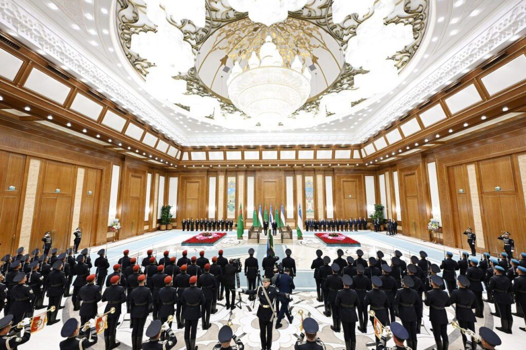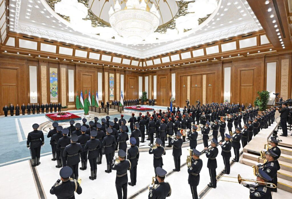 Marosim davomida harbiy orkestr ijrosida davlat madhiyalari yangradi, faxriy qorovul esa tantanali ravishda prezidentlar oldidan saf tortib o‘tdi. Yetakchilar rasmiy delegatsiyalar a’zolarini ham samimiy qutladilar.