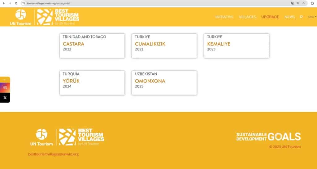 Ma’lumot o‘rnida, BMT Turizmning «Eng yaxshi turizm qishlog‘i» tanlovi 2021-yildan beri o‘tkazilib keladi. Bu maqom ekologik, agroturizm, madaniy merosni saqlash va barqaror rivojlanishda yetakchi bo‘lgan qishloqlarga beriladi. 2023-yilda Navoiy viloyatida joylashgan Sentob qishlog‘i ham shu e’tirofga loyiq deb topilgan edi.