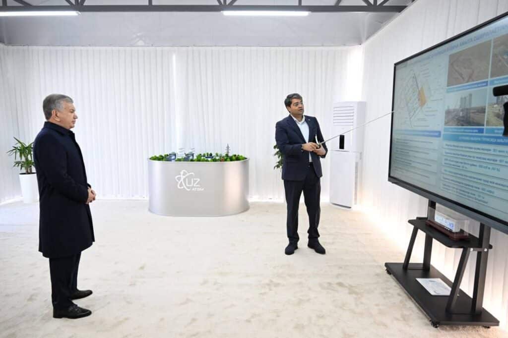 Safar davomida prezidentga Jizzax viloyatida barpo etilayotgan atom elektr stansiyasi loyihasi haqida ham axborot berildi. Hozir viloyatda ikkita kam quvvatli va ikkita yirik reaktordan iborat integratsiyalashgan AES qurilishi boshlangan. Ayni paytda reaktor binosi uchun kotlovan qazish ishlari olib borilmoqda. Shuningdek, qurilish-montaj bazasi hududi tekislangan, betonlash va armatura o‘rnatish ishlari bajarilmoqda.