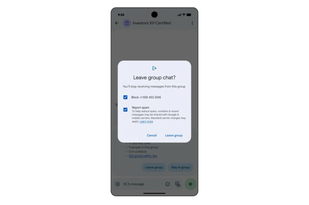 Agar sizni noma’lum raqam guruhga qo‘shsa Android qisqa ma’lumot beradi va sizga darhol chiqish yoki bloklash imkonini taqdim etadi.