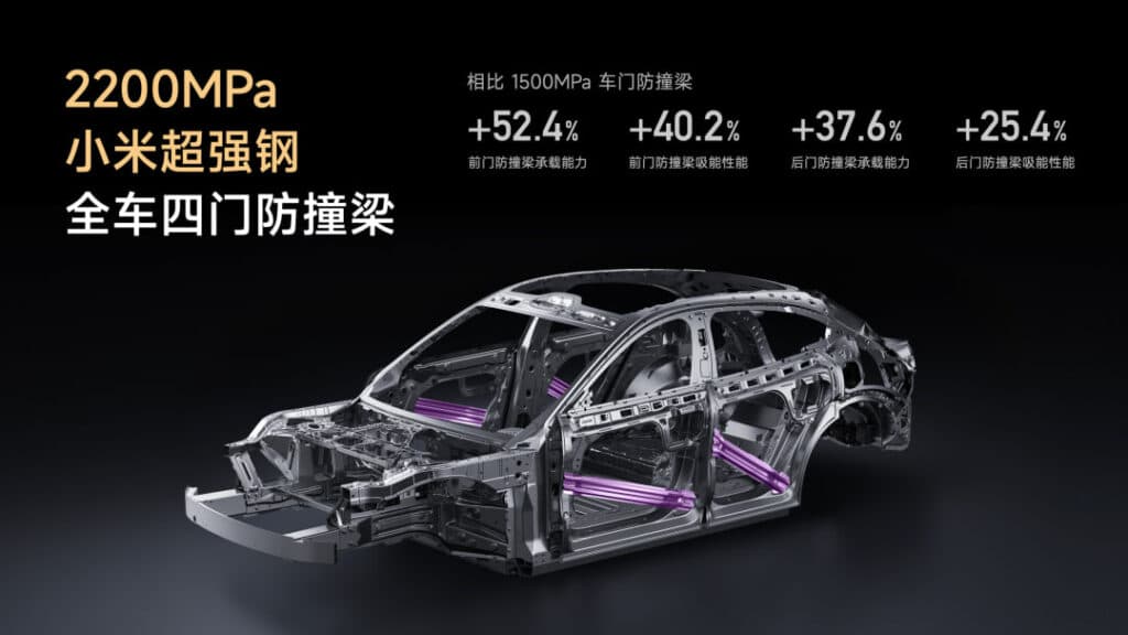 2400 MPa po‘lat uchta asosiy ustunlikni beradi. Birinchidan, asosiy xavfsizlik elementlarining zarbaga chidamliligini sezilarli oshiradi.