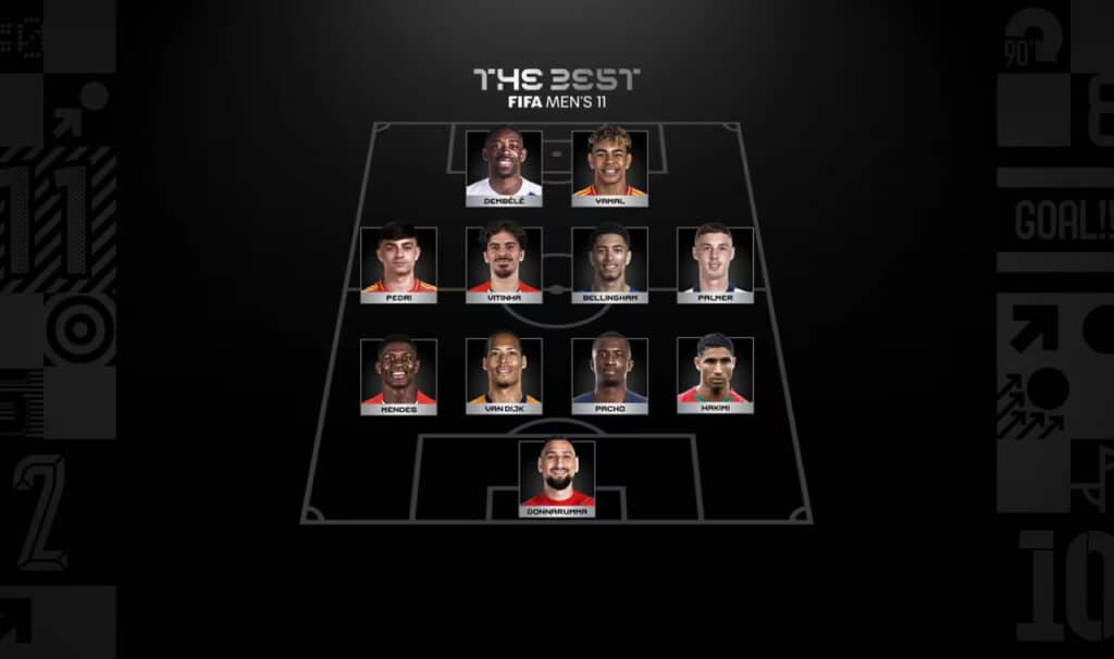Ramziy jamoadan «Pari Sen-Jermen»ning olti nafar futbolchisi Janluiji Donnarumma, Ashraf Hakimi, Uilyam Pacho, Nuno Mendesh, Vitinya va Usmon Dembele o‘rin oldi. Shuningdek, Virjil van Deyk, Koul Palmer, Pedri, Jud Bellingem va Lamine Yamal tarkibdan joy olgan.