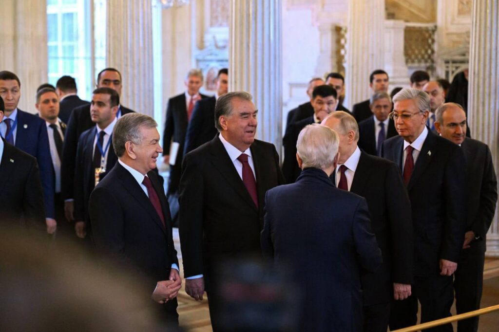 «Ermitaj» davlat muzeyida boʻlib oʻtgan tadbirda Rossiya Federatsiyasi prezidenti Vladimir Putin, Belarus Respublikasi prezidenti Aleksandr Lukashenko, Qozogʻiston Respublikasi prezidenti Qasim-Jomart Toqayev, Qirgʻiz Respublikasi prezidenti Sadir Japarov, Tojikiston Respublikasi prezidenti Emomali Rahmon, Turkmaniston prezidenti Serdar Berdimuhamedov hamda Armaniston bosh vaziri Nikol Pashinyan qatnashdi.