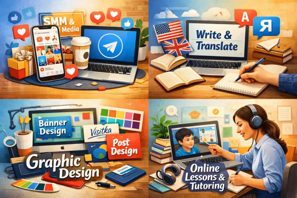 18. Onlayn darslar yoki repetitorlik: uyda yoki Zoom orqali ishlash mumkin.