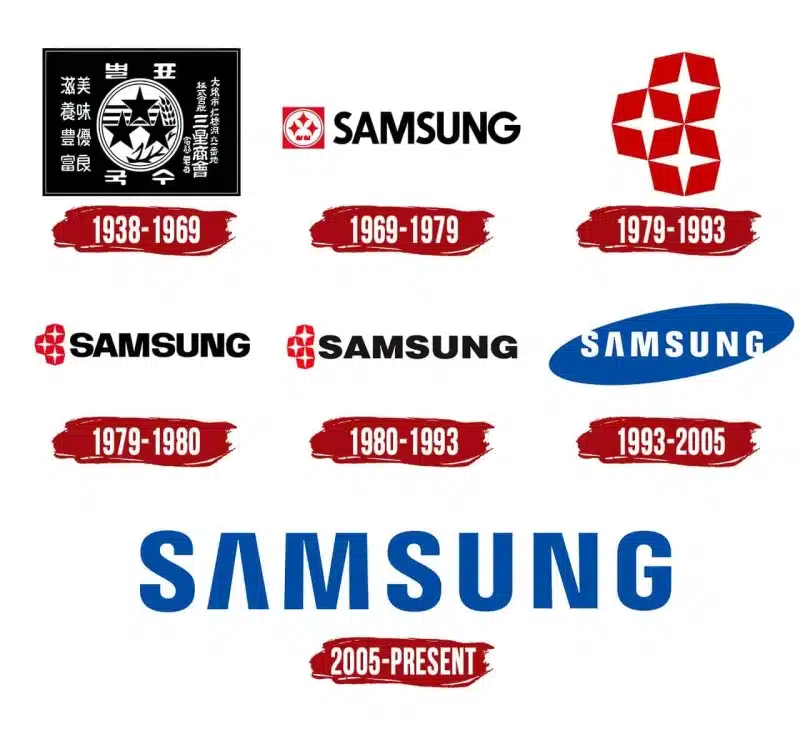 Samsung logotipi bir necha bor oʻzgargan. 1990-yillar brendingida koʻk oval (ellips) ommalashgani, keyinroq esa minimallashgan Samsung yozuviga oʻtiladi. Brendingdagi bu soddalashuv aslida bozor signalidir: kompaniya nomining oʻzi global darajada taniladigan belgi boʻlib qolgan.