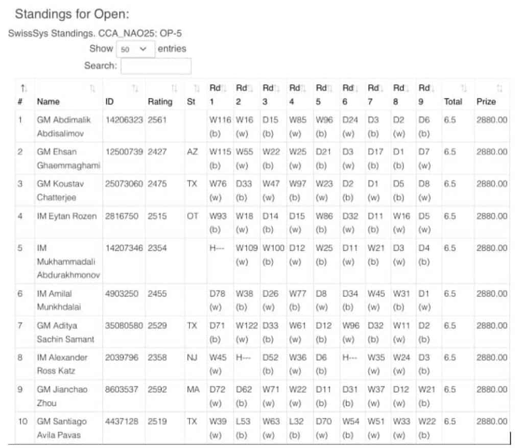 AQShning Las-Vegas shahrida boʻlib oʻtgan «North American Open – 2025» xalqaro shaxmat turnirida Oʻzbekiston milliy terma jamoasi a’zosi Abdumalik Abdusalimov gʻalaba qozondi.
