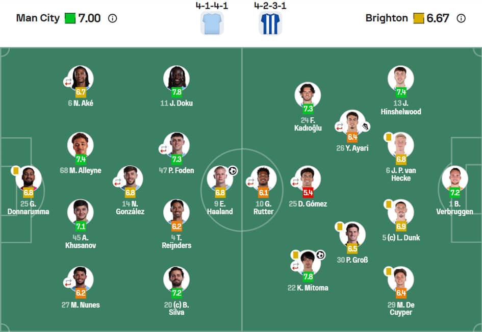 Abduqodir Husanov 80 marta to‘pga tegib, amalga oshirgan 71 ta uzatmasining 66 tasini aniq manzilga yetkazdi. Sofascore portali o‘zbekistonlik futbolchining harakatlarini 7,1 ball bilan baholadi. Uchrashuvning eng yaxshi futbolchisi deb «Manchester Siti» a’zosi Rayan Sherki (7,9 ball) topilgan bo‘lsa, «Brayton»ning goliga mualliflik qilgan Kaoru Mitoma 7,8 ballga loyiq ko‘rildi.
