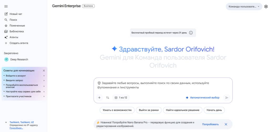 Google kompaniyasi Gemini Enterprise Business Edition obunasiga bir oylik bepul kirish imkonini taqdim etdi. Ushbu paket o‘z ichiga Gemini 3 Pro, video yaratish uchun Veo 3.1 va tasvirlar bilan ishlash uchun Nano Banana neyron tarmoqlarini oladi.