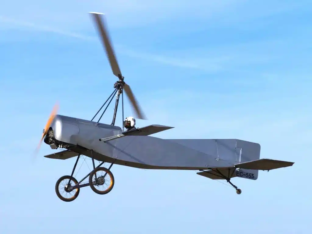 1923-yilda ispan muhandisi Xuan de la Syerva o‘zi ixtiro qilgan uchuvchi apparatda birinchi muvaffaqiyatli parvozni amalga oshirdi. Ushbu qurilma vertolyot va samolyot o‘rtasidagi oraliq texnika hisoblanib, havoda muallaq turish xususiyatiga ega emas edi, ammo xavfsiz qo‘na olardi. Uning ixtirosi keyinchalik zamonaviy vertolyotlarning yaratilishida muhim poydevor bo‘ldi.