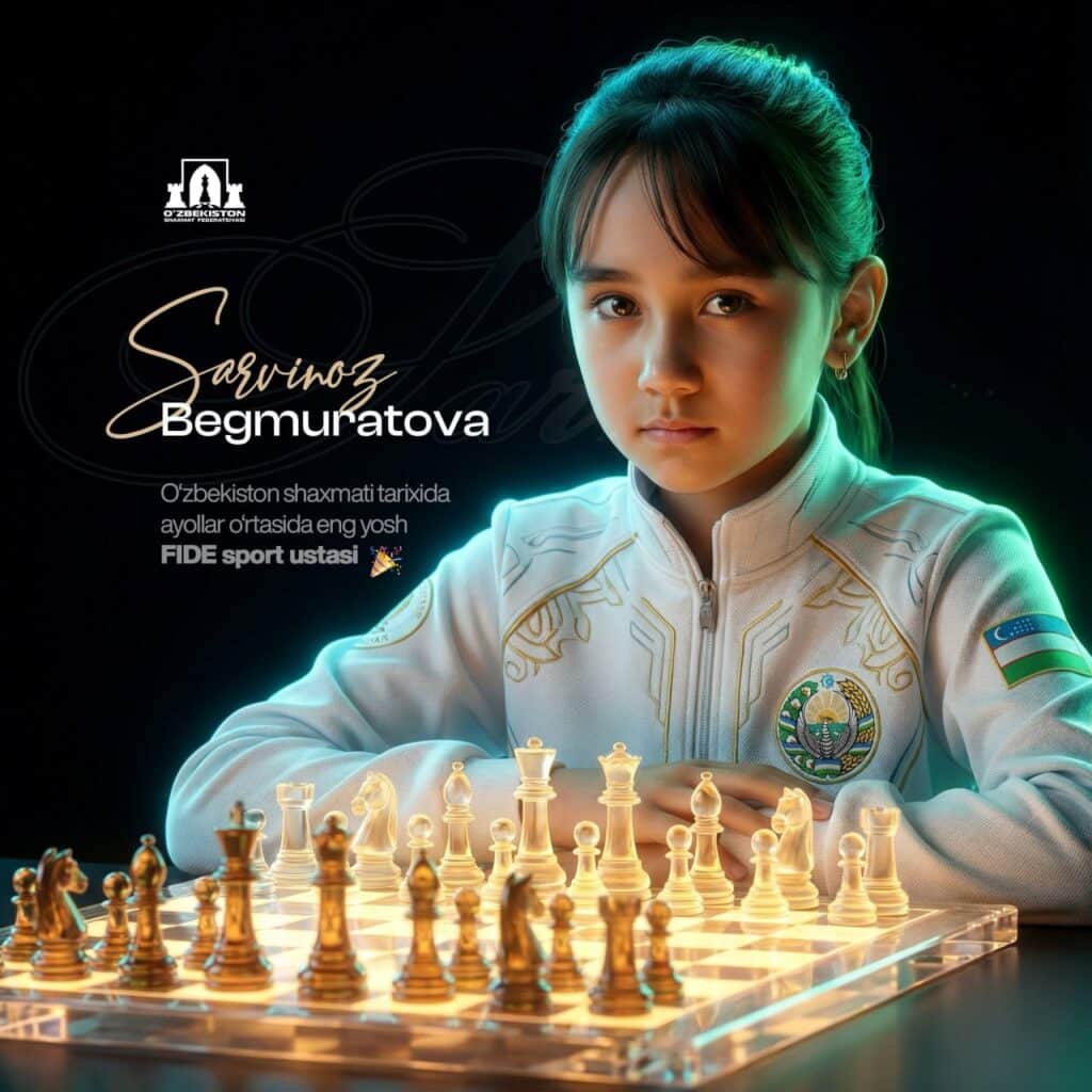 O‘zbekistonlik 12 yoshli shaxmatchi Sarvinoz Begmuratova FIDE ayollar o‘rtasidagi sport ustasi unvoniga sazovor bo‘ldi. Bu haqda O‘zbekiston shaxmat federatsiyasi raisning birinchi o‘rinbosari Alisher Sa’dullayev xabar berdi.