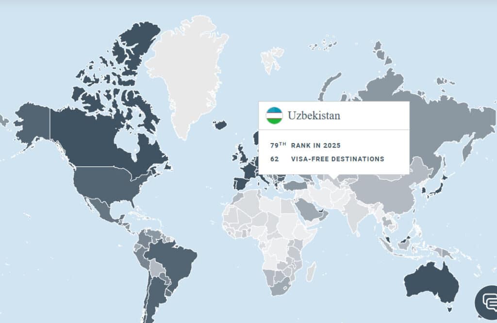 Henley & Partners tomonidan e’lon qilingan 2025-yilgi pasportlar reytingida O‘zbekiston pasporti 79-o‘rinni egalladi. Avval mamlakat 82-pog‘onadan joy olgan edi.