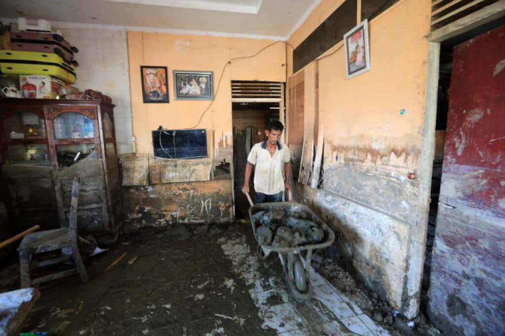Acheh, Indoneziya. Bir kishi Meureudu hududidagi suv toshqini ta’siriga uchragan qishloqda uyini loydan tozalamoqda.