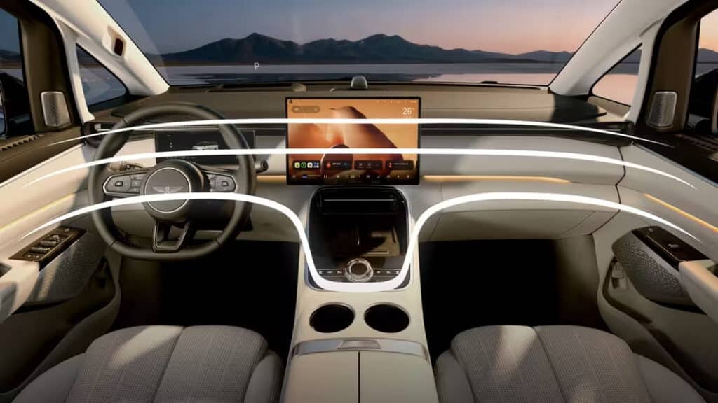 Orqa qatordagi yo‘lovchilar uchun 17,3 dyuymli ekran, shuningdek, turli funksiyalarni boshqarish uchun 6 dyuymli alohida displey taqdim etilgan. Salon bo‘ylab faol sovitish funksiyasiga ega bo‘lgan to‘rtta simsiz zaryadlovchi qurilma mavjud. Cloud-Sensing SPA texnologiyasiga ega o‘rindiqlar isitish, shamollatish, xotira va massaj funksiyalarini qo‘llab-quvvatlaydi. Shuningdek, 9,1 litrli sovutgich ham bor. Salon ichida jami 42 ta saqlash bo‘limi mavjud. Bagaj hajmi esa 1000 litrdan oshadi.