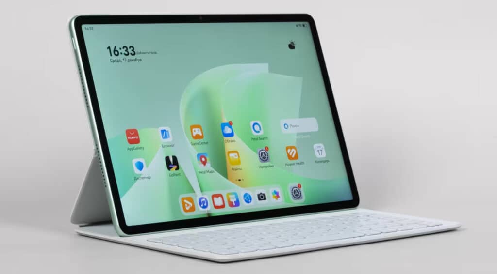 Qurilma juda yupqa va yengil bo‘lib, qalinligi bor-yo‘g‘i 6,1 mm, og‘irligi esa 515 grammni tashkil etadi. Korpus to‘liq metalldan ishlangan. Texnik imkoniyatlariga ko‘ra, planshetga 8 yadroli Kirin protsessori va 12 GB tezkor xotira o‘rnatilgan.
