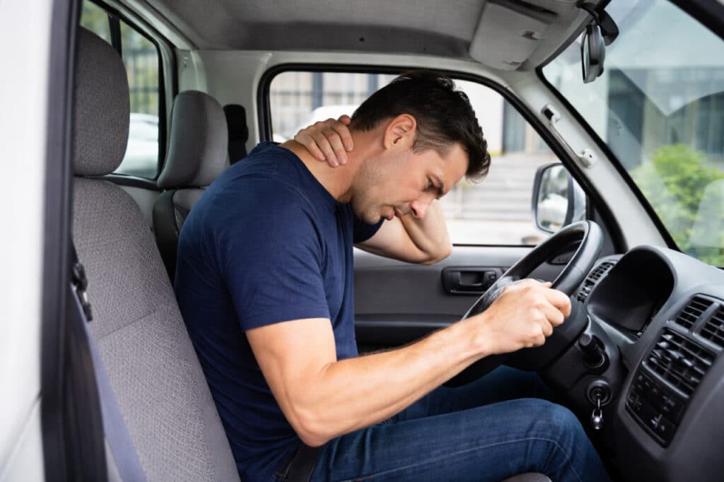Uzoq vaqt davomida shu holatda avtomobil boshqarish bo‘yin umurtqalarida osteoxondroz, protruziya yoki grija rivojlanishiga olib keladi. Bo‘yin sohasidagi nervlar va qon tomirlari siqila boshlaydi. Natijada miya va vegetativ asab tizimi ta’sirlanadi. Bu esa yurak sohasida g‘ashlik, sanchiq, nafas qisishi, qo‘rquv va vahima xurujlari kabi alomatlarga sabab bo‘ladi.