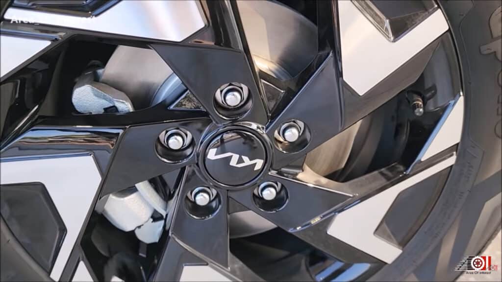 Kia Sonet HTK Plus 16 dyuymli yengil qotishmali disklar bilan jihozlangan. Disklar qora va kumush rang uyg‘unligida, keskin geometrik shakllarda ishlangan bo‘lib, avtomobilga sportona ruh bag‘ishlaydi. Shinalar o‘lchami 215/60 R16 bo‘lib, Apollo brendiga mansub. Ushbu konfiguratsiya shahar va magistral yo‘llarda barqarorlikka qaratilgan.