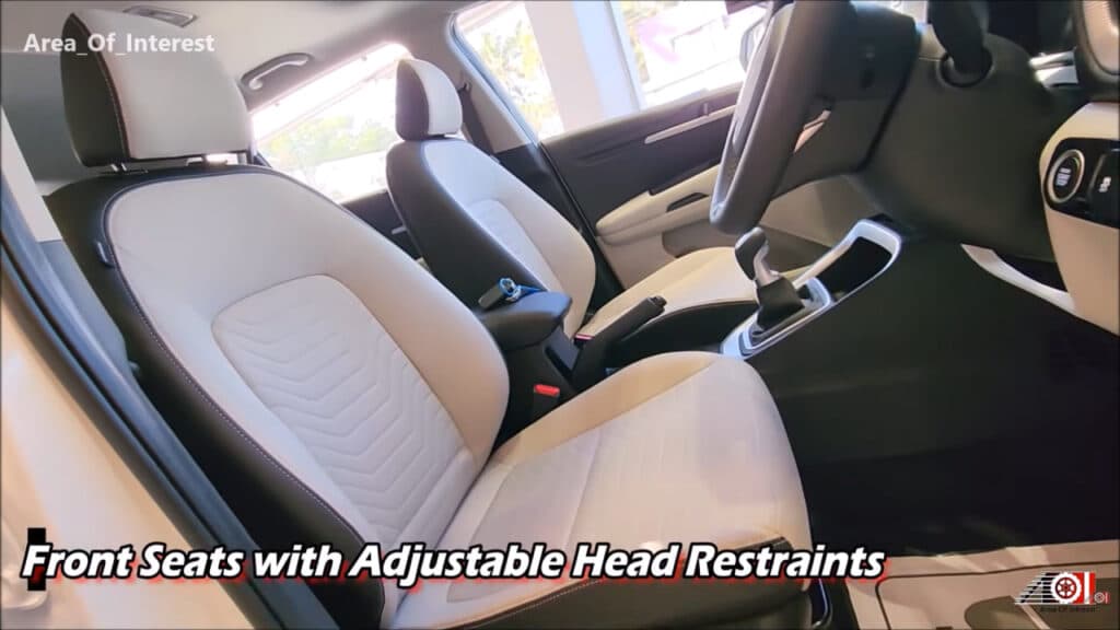 Old va orqa o‘rindiqlar mato qoplamaga ega bo‘lib, geometrik naqshlar bilan bezatilgan. Old o‘rindiqlarda sozlanadigan bosh tirgaklari mavjud. Orqa qatorda ham ikki dona sozlanadigan bosh tirgak o‘rnatilgan. Markaziy qismda bukiladigan qo‘ltiqtayoq bo‘lib, unda stakan qo‘yish joylari mavjud.