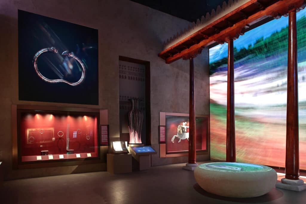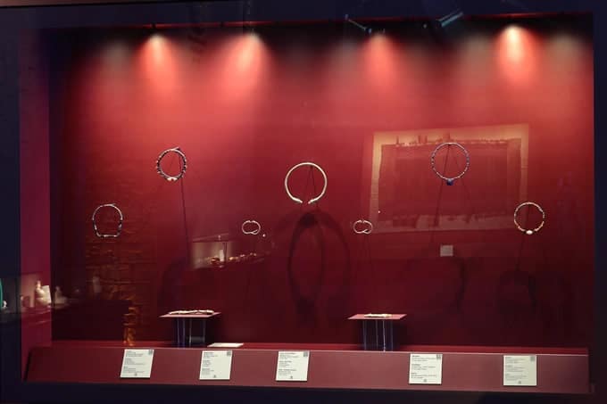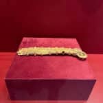 Unga ko‘ra, ko‘rgazmada Baqtriya jamiyatida ijtimoiy mavqe va boylik ramzi bo‘lgan oltin bilaguzuklar, marosimiy va ruhiy himoya ma’nosini anglatuvchi marjon hamda bo‘yin taqinchoqlari, shuningdek, miloddan avvalgi IV asrga oid oltin pichoq qini namoyishga qo‘yilgan.