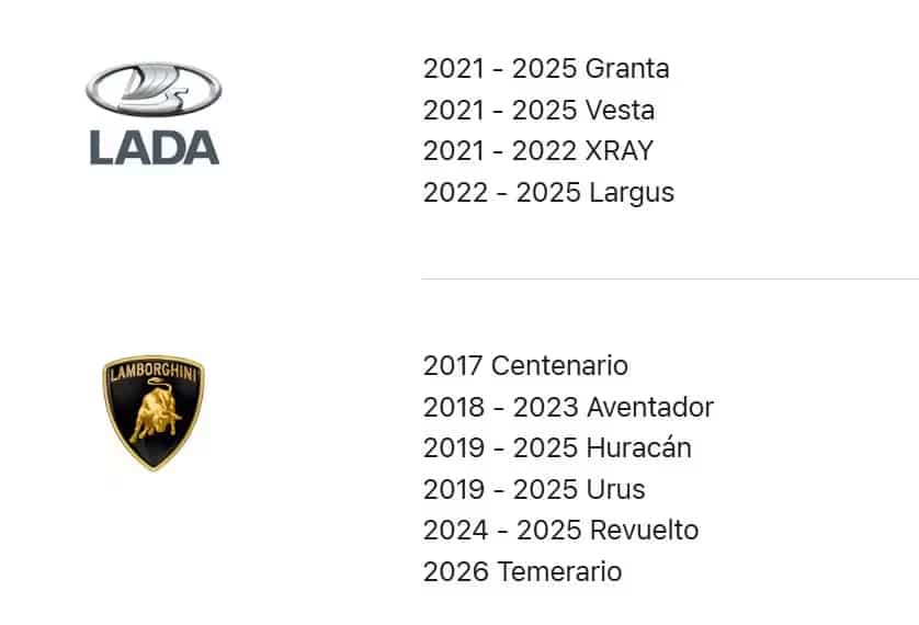 Ma’lumotlarga ko‘ra, ushbu sahifada CarPlay bilan mos keluvchi 800 dan ortiq avtomobil modellari jamlangan. Ro‘yxatda eng yangi Lada Iskra modeli esa hozircha keltirilmagan.