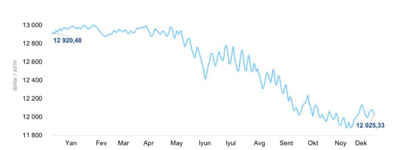 2025-yilda so‘m kursi 6,9 foizga mustahkamlanib, kunlik tebranuvchanlik darajasi ikki barobarga oshdi. Bu haqda Markaziy bank hisobotida keltirilgan.