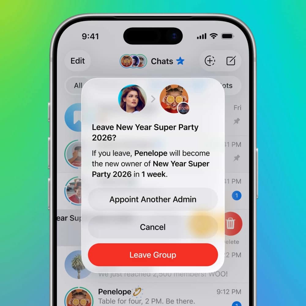 Yangilanish guruh egalari uchun ham qulayliklar olib keldi. Endilikda guruh egasi uni tark etishga qaror qilsa, barcha huquqlarni oldindan tanlangan administratorga topshirishi mumkin. Huquqlar avtomatik tarzda 7 kundan so‘ng yangi egaga o‘tadi.