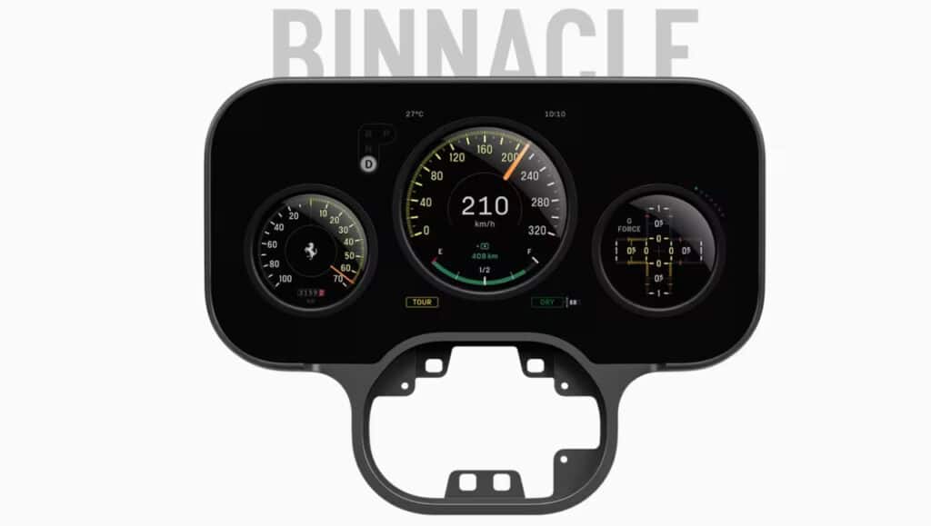 Katta buriladigan ekran boshqa avtomobillardagi ekranlarga deyarli o‘xshamaydi. Kvadrat shakldagi ekran umumiy ko‘rinishda alohida portativ elektron qurilmaga o‘xshaydi, analog boshqaruv elementlari va mexanik soat bilan jihozlangan.