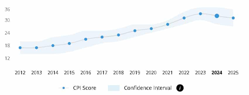 Transparency International tashkiloti 2025-yil natijalarini tavsiflab, global korrupsiyaga qarshi kurash ko‘rsatkichi pasayib borayotganini ta’kidlaydi (o‘rtacha ball 42 ballgacha yangi eng past ko‘rsatkichga tushdi). Bundan tashqari, ko‘plab mamlakatlarda vaziyat yomonlashmoqda yoki turg‘unlashmoqda. Hatto an’anaviy ravishda eng yaxshi o‘ntalikning ko‘p qismini egallagan Yevropa mamlakatlarida ham korrupsiyani qabul qilishning o‘rtacha ko‘rsatkichi pasaygan.