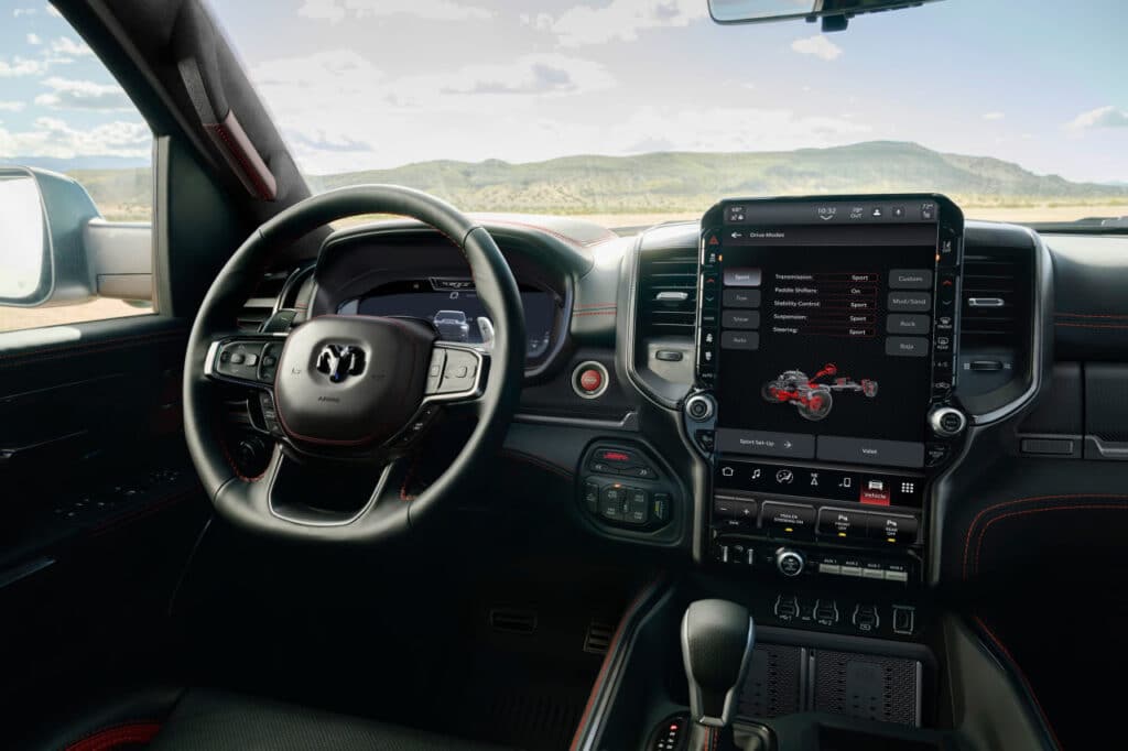 Pikap 6,2 litrli kompressorli V8 dvigateli bilan jihozlangan bo‘lib, u 777 ot kuchi va 921 Nm aylanuvchi moment hosil qiladi. Bu ko‘rsatkichlar bilan Ram o‘zining asosiy raqobatchisi 720 ot kuchiga ega Ford Raptor R modelini ortda qoldirdi. Og‘irligi uch tonnadan oshishiga qaramay, avtomobil tezlanish dinamikasi bo‘yicha ko‘plab yengil sportkarlardan ustun kelgan.