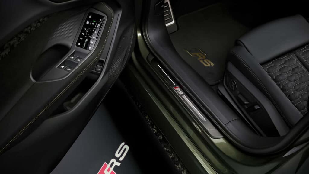 Quattro to‘liq g‘ildirak tizimi orqa o‘qdagi moment taqsimoti bilan boyitilgan. RS-rejimli drift funksiyasi mavjud bo‘lib, yopiq treklarda orqa g‘ildiraklarga 85% gacha quvvatni yo‘naltirish imkonini beradi. Salon uchta displeyli «raqamli kokpit» va massaj funksiyali sport o‘rindiqlar bilan jihozlangan. Sport rulida Boost tugmasi mavjud bo‘lib, 10 soniya davomida barcha dvigatellar maksimal quvvatga ishlaydi.