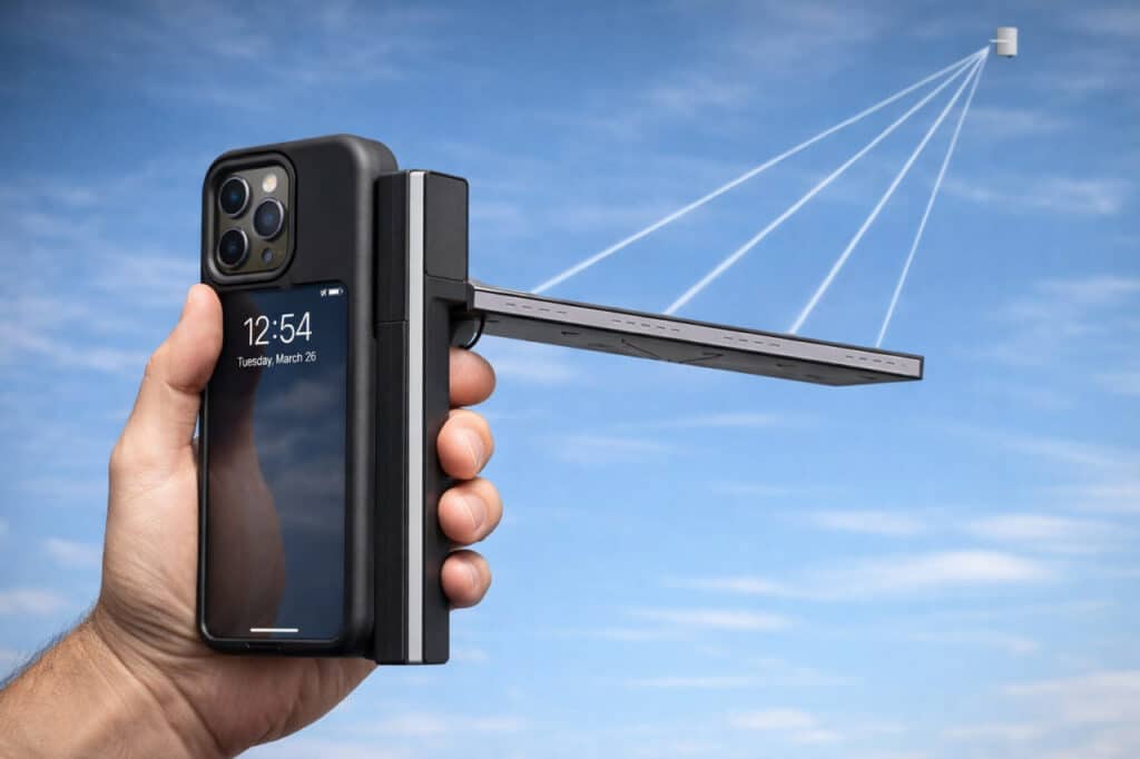 G‘ilofning bir qismi ochilib, ichki fazali antenna massivini osmonga yo‘naltiradi. Bu foydalanuvchi telefonni ushlasa ham signal to‘silmasligini ta’minlaydi, chunki antennalarni o‘z ichiga olgan qismga tegilmaydi. Shu tarzda foydalanuvchi g‘ilofni oddiy himoya vositasi sifatida ishlatishi va kerak bo‘lsa olib tashlashi mumkin.