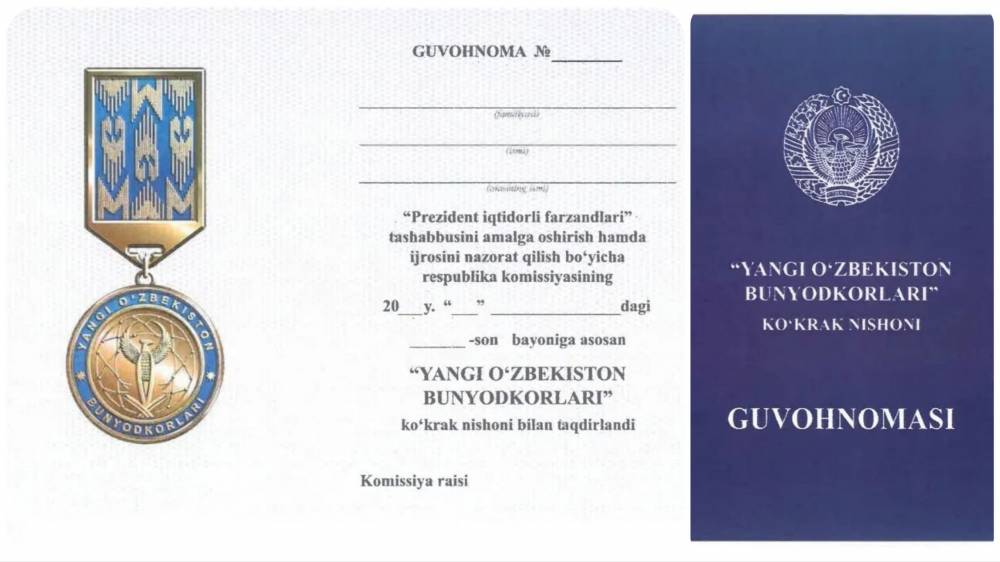«Yangi O‘zbekiston bunyodkorlari» ko‘krak nishoni kimlarga beriladi