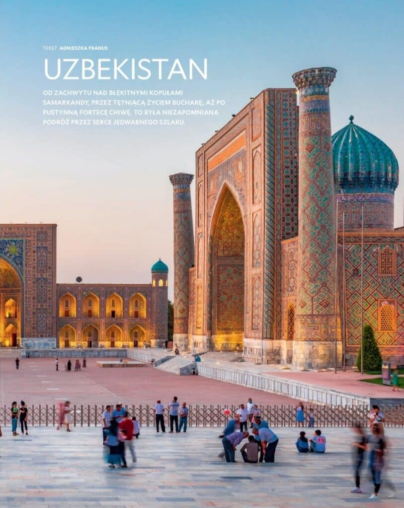 Polshalik jurnalist Agneshka Franus muallifligidagi maqolada O‘zbekistonning boy tarixiy-madaniy merosi hamda Buyuk Ipak yo‘li shaharlarining arxitekturasi yoritilgan. Xususan, YUNESKOning Butunjahon merosi ro‘yxatiga kiritilgan Registon ansambli, Shohizinda, Bibixonim masjidi, Amir Temur maqbarasi, shuningdek, Buxorodagi Ark qal’asi va Xivadagi Ichan-qal’a majmualari yuqori baholangan.