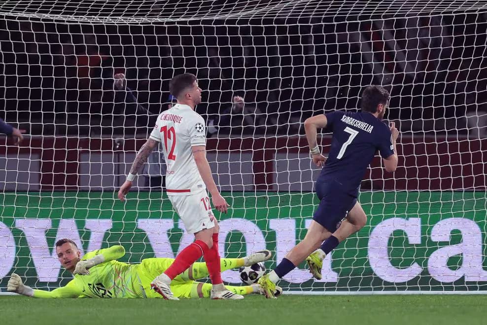 Parijliklar ko‘p o‘tmay Markinyos va Xvicha Kvaratsxeliya gollari evaziga hisobda oldinga o‘tib olishdi. Uchrashuvning so‘nggi soniyalarida Jordan Teze hisobni tenglashtirgan bo‘lsa-da, bu «Monako»ga umumiy natijani o‘zgartirish uchun kamlik qildi. Luis Enrike shogirdlari nimchorak finalda «Chelsi» yoki «Barselona» jamoalaridan biriga raqib bo‘lishadi.